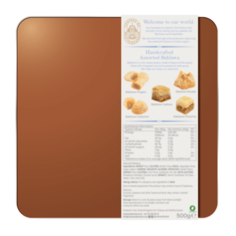 | Brand | Chateau de Mediterranean | Product Code | TIN BOX-Assorted-Baklava-baklawa-500g |